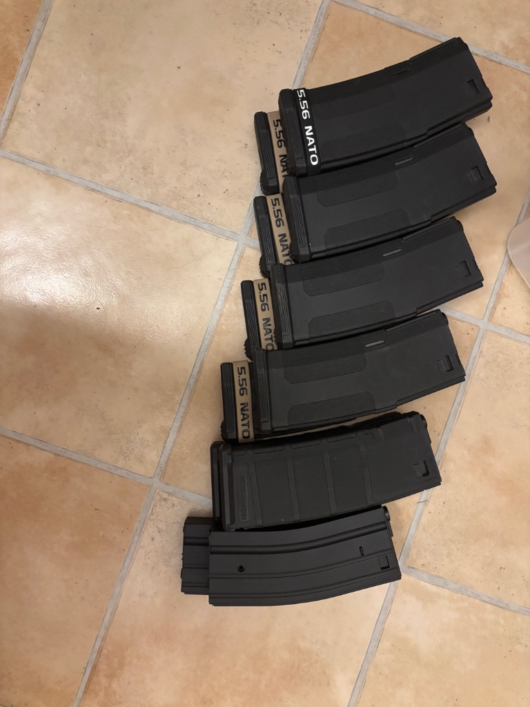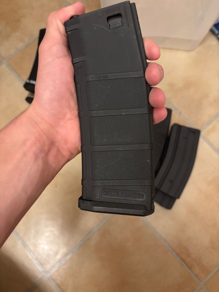 Zdravím prodám zásobníky : mám tu 8x Novritsch tlačný jeden je na 225 kuliček cena : 375/ks , dále delta armory na 120 ran cena 100/ks a 2x točny tuším že na 300 ran cena 100/ks