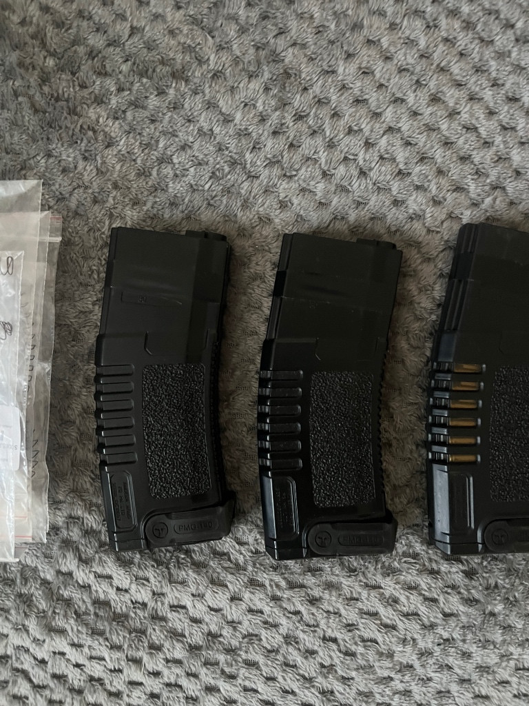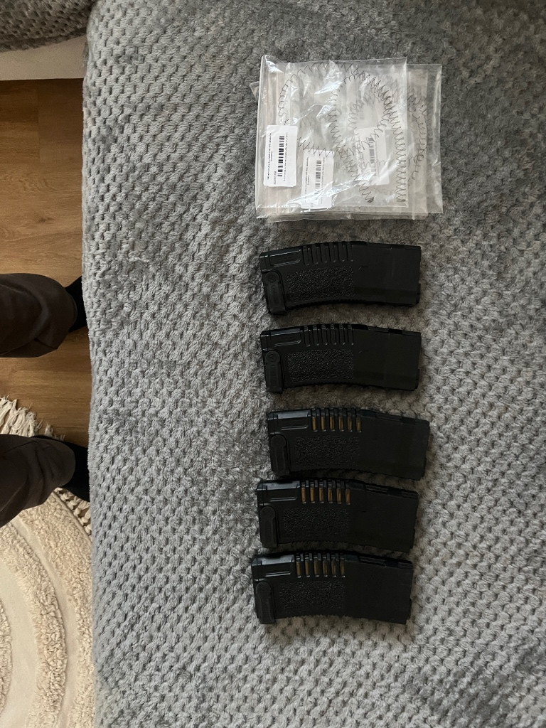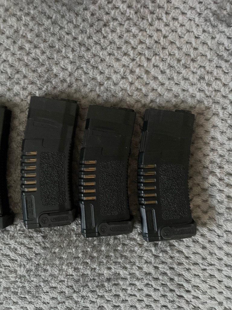 Prodám polymerový tlačný zásobníky pro M4 od značky Ares na 140 ran celkem 5 kusů. Jsou vyměněné pružinky za nové staré přidám. Všechny podávají jak mají. nikde není nic prasklého. Běžné opotřebení.